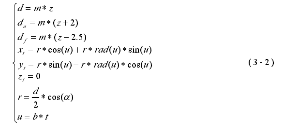 在 UG NX 軟件中,通過(guò)當(dāng)前工作坐標(biāo)系創(chuàng)建漸開線的方程式為: 式中