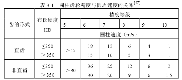 按照漸開線圓柱齒輪精度標(biāo)準(zhǔn) JB179-83 的規(guī)定,齒輪的制造精度分為 12級(jí)。其中 1 級(jí)最高,12 級(jí)最低。一般機(jī)械中常用的齒輪精度等級(jí)為 6~8 級(jí)。齒輪精度等級(jí)應(yīng)根據(jù)齒輪傳動(dòng)的用途、使用條件、傳遞功率、圓周速度等技術(shù)要求來(lái)決定,主要是根據(jù)齒輪圓周速度的大小來(lái)選擇,參見表 3-1。 (4)齒輪特征模型參數(shù)化的實(shí)現(xiàn)