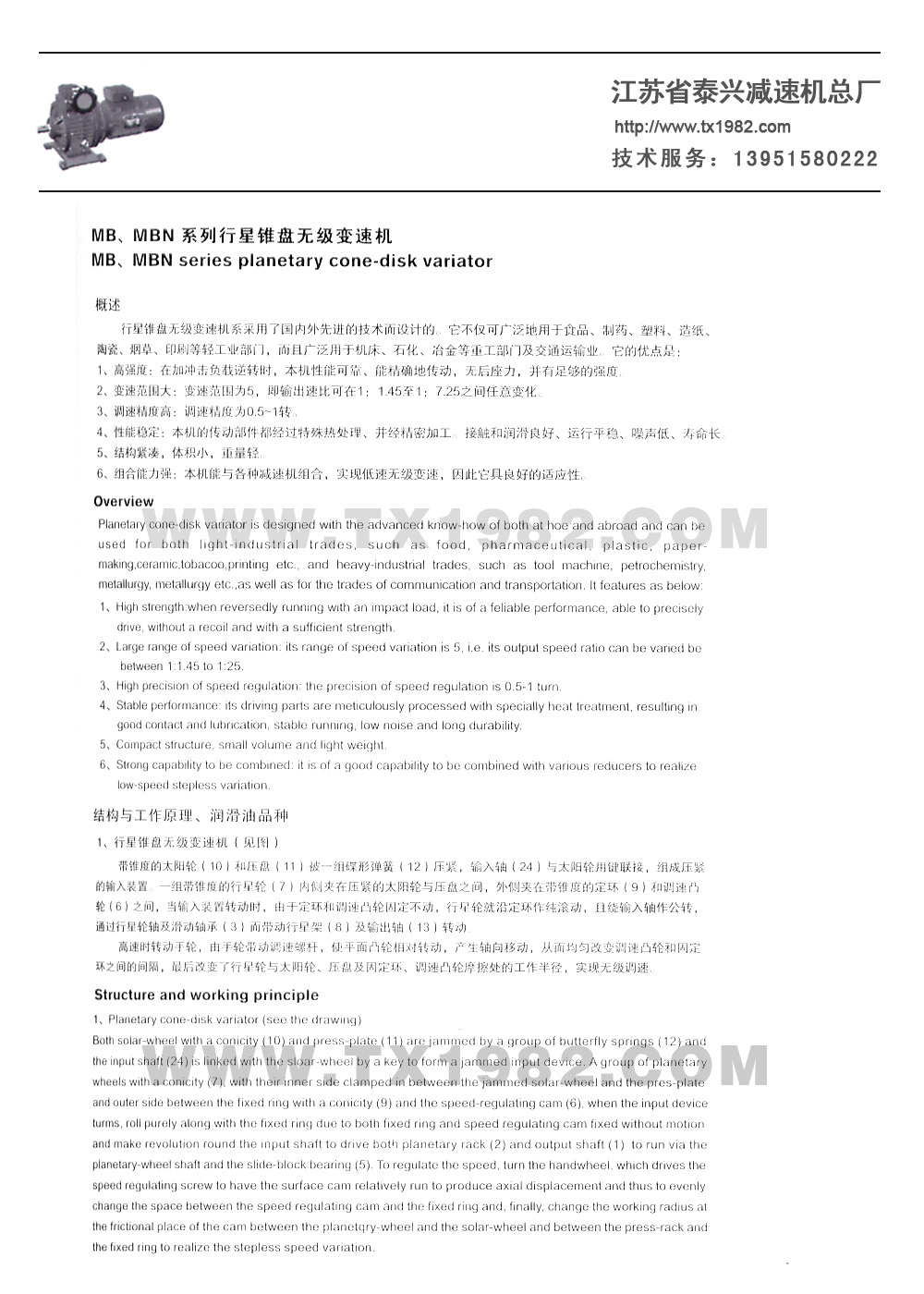 MB、MBN系列行星錐盤無級(jí)變速機(jī)