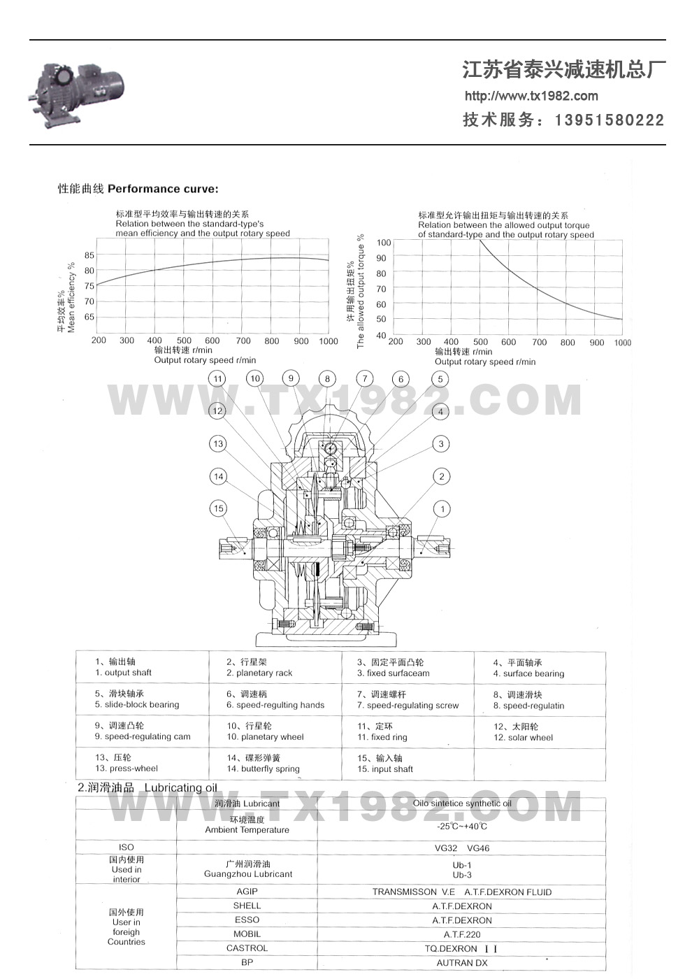 5、MB變速機(jī)的輸出轉(zhuǎn)矩和功率時(shí)隨著輸出轉(zhuǎn)數(shù)的變化而變化,具有變轉(zhuǎn)矩、變功率的機(jī)械特征。