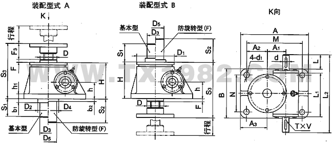 1型結(jié)構(gòu)有基本型、防旋轉(zhuǎn)型(F)和帶防護(hù)罩型(Z);