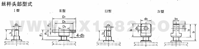1型結(jié)構(gòu)型式的絲桿頭部分為Ⅰ型(圓柱型)、Ⅱ型(法蘭型)、Ⅲ型(螺紋型)、Ⅳ型(扁頭型)四種型式;