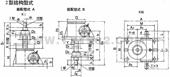 2型結(jié)構(gòu)型式的絲桿頭部分為Ⅰ型(圓柱型)、Ⅲ型(螺紋型)二種型式。
