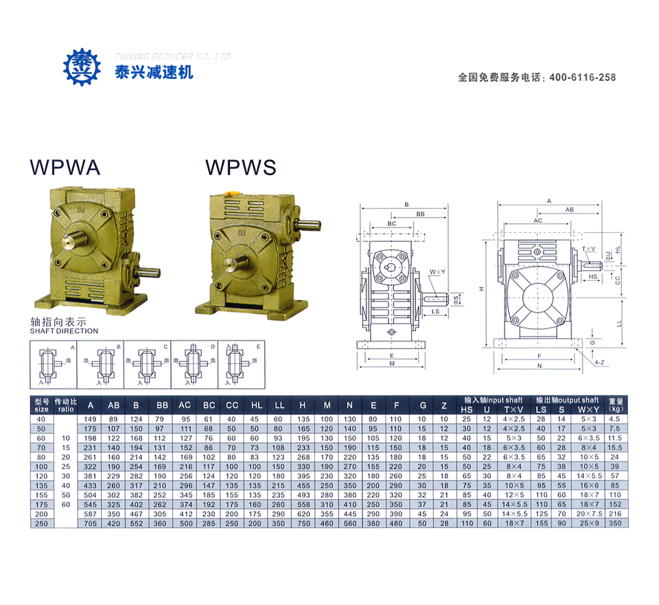 WPWA蝸輪減速機 24小時服務電話: 李先生 13951580222 方小姐 15251425679 郭小姐 15251425680 陳小姐 13812062323 謝小姐 18915322345