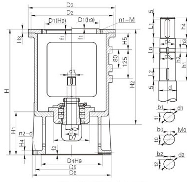 減速機(jī)輸出軸徑d0 減速機(jī)類別代號 D1 D2 D3 n1-M f1