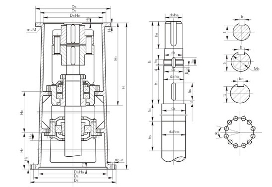 注:圖示所注“h”僅與本樣本BLD、LC-Ⅱ、DC-Ⅱ系列減速機(jī)相配,如選用其他型號或其他廠家減速機(jī),“h”需另行計算。增高后的LSJ型機(jī)架其下部空間高度可容納205、206或207型雙端面機(jī)械密封。